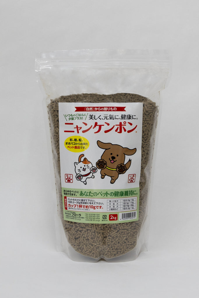 NYANKENPON is a pelletized pet food made of pure natural plant essences extracted from cedars, Japanese cypress, pines, and plantains. It’s safe and harmless and you can feed it to your pets with peace of mind.
